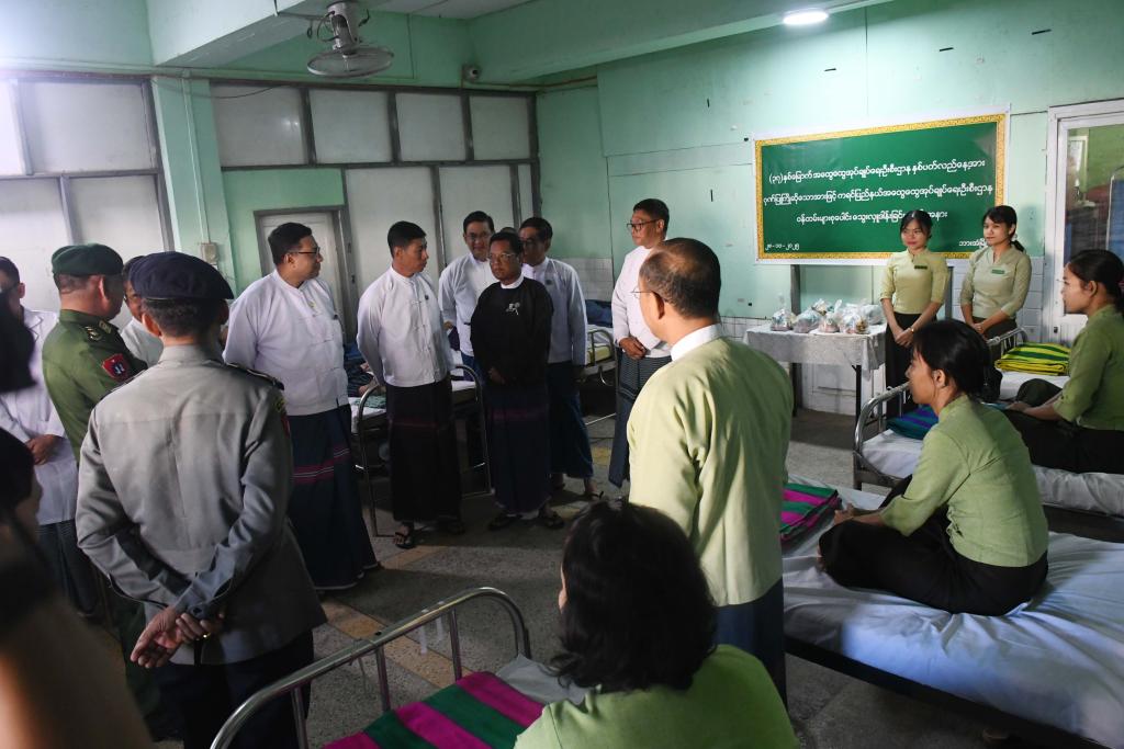 ထိုသို့စုပေါင်းသွေလှူဒါန်းနေမှုကို ကရင်ပြည်နယ်အစိုးရအဖွဲ့ ခေတ္တဝန်ကြီးချုပ်လုံခြုံရေးနှင့်နယ်စပ်ရေးရာ ဝန်ကြီးဗိုလ်မှူးကြီးမင်းသူကျော်၊ ပြည်နယ်အစိုးရအဖွဲ့ဝင်များ၊ ပြည်နယ်အထွေထွေအုပ်ချုပ်ရေးဦးစီးဌာနဒုတိယညွှန်ကြား ရေးမှူးချုပ်ဦးမင်းရွှေ၊ ပြည်နယ်ပြည်သူ့ကျန်းမာရေးနှင့်ကုသုရေးဦးစီးဌာနပြည်နယ်ဦးစီးမှူးဒေါက်တာကျော်စွာမြင့်၊ ဆေးရုံ အုပ်ကြီးဒေါက်တာဘရန်အောင်နှင့်တာဝန်ရှိသူများက သွေးလှူဒါန်းကြမည့် အထွေထွေအုပ်ချုပ်ရေးဦးစီးဌာနမှ ဝန်ထမ်း များအား ကျန်းမာရေးဝန်ထမ်းများက ကိုယ်အလေးချိန်နှင့်သွေးပေါင်ချိန်တိုင်းတာခြင်း၊ သွေးအမျိုးအစားခွဲခြားခြင်းနှင့် လိုအပ်သည့် ကျန်းမာရေးစစ်ဆေးမှုများဆောင်ရွက်ပေးနေမှု၊ သွေးလှူဒါန်းရန်ကိုက်ညီသူများက ကျန်းမာရေးဝန်ထမ်းများ ၏အကူအညီဖြင့် သွေးသန့်များဖောက်ထုတ်လှူဒါန်းပေးနေမှုများကို လိုက်လံကြည့်ရှုအားပေးခဲ့ကြပြီး သွေးလှူဒါန်းကြသူ များအား ရင်းနှီးနွေးထွေးစွာတွေ့ဆုံအားပေးစကားများပြောကြားကာ အာဟာရဖြည့်စွက်အစားအစာများ ချီးမြှင့်ပေးအပ်ခဲ့ကြပါသည်။