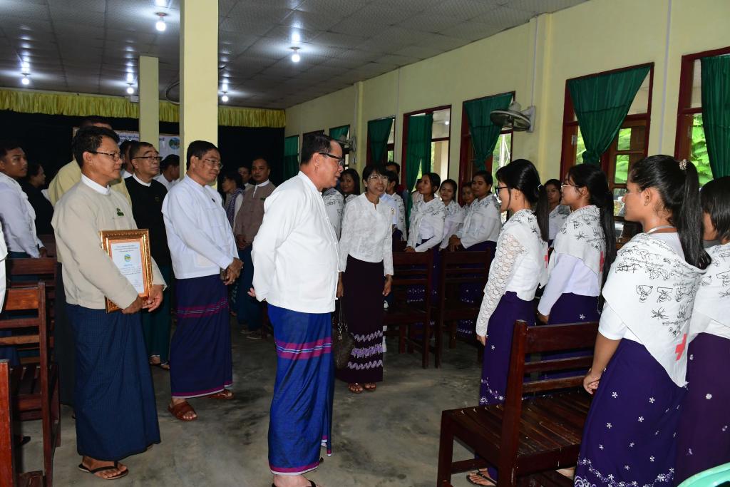 ဦးစွာ ပြည်နယ်လူငယ်ရေးရာကော်မတီဥက္ကဋ္ဌ ပြည်နယ်ဝန်ကြီးချုပ်ဦးစောမြင့်ဦးက သင်တန်းမှတတ်မြောက် ပြီးသော ရှေးဦးပြုစုခြင်းပညာရပ်ဖြင့် ပြည်သူလူထုတိုင်း ရှေးဦးပြုစုခြင်းတတ်မြောက်စေရန်နှင့် တတ်မြောက်ထား သည့် ရှေးဦးပြုစုခြင်းပညာရပ်များဖြင့် ပြည်သူ့အကျိုးပြုလုပ်ငန်းများဆောင်ရွက်နိုင်စေရန်ရည်ရွယ်ပြီး စိတ်ကောင်း စေတနာကောင်းများဖြင့် ပညာပြည့်ဝနှလုံးလှသော စွမ်းဆောင်ရည်ပြည့်ဝသည့် ထူးချွန်ကြက်ခြေနီကောင်းများဖြစ် ပေါ်လာစေရန် ယခုထက်ပိုမိုပြီးလေ့လာဆည်းပူးသင်ယူခြင်းဖြင့် အမြဲတမ်းအဆင်သင့်ဖြစ်နေအောင် လေ့ကျင့်ထားကြ စေလိုကြောင်း ပြောကြားသည်။