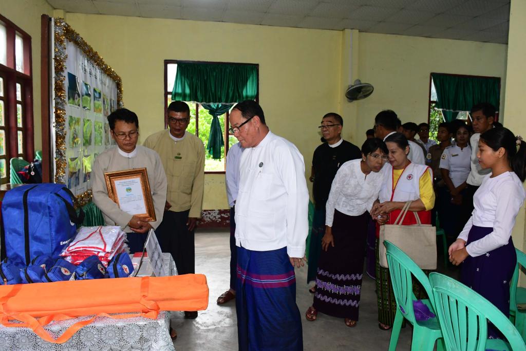 ထို့နောက် ကရင်ပြည်နယ်ကြက်ခြေနီကြီးကြပ်မှုကော်မတီဥက္ကဋ္ဌ သင်တန်းဆိုင်ရာများကို ရှင်းလင်း ပြောကြားပြီး ပြည်နယ်ဝန်ကြီးချုပ်က ရှေးဦးပြုစုခြင်း(အခြေခံ)သင်တန်းတွင် သင်တန်းထူးချွန် ပထမ၊ ဒုတိယ၊ တတိယ ဆုရရှိကြသူများကိုလည်းကောင်း၊ ပလပ်စတစ်ရေတိုင်ကီနှင့်ဆက်စပ်ပစ္စည်းများ လှူဒါန်းပေးကြသူများအား ဂုဏ်ပြုမှတ်တမ်းလွှာများကိုလည်းကောင်း၊ ပြည်နယ်တရားလွှတ်တော်တရားသူကြီးချုပ်က သင်တန်းထူးချွန်အထူးဆု ရရှိကြသူများကိုလည်းကောင်း၊ လုံခြုံရေးနှင့်နယ်စပ်ရေးရာဝန်ကြီးက သင်တန်းဆင်းလက်မှတ်နှင့် သင်တန်းနည်းပြ များအား ဂုဏ်ပြုလက်ဆောင်များကိုလည်းကောင်း၊ ပြည်နယ်ကြက်ခြေနီကြီးကြပ်မှုကော်မတီက ရှေးဦးပြုစုခြင်း အထောက်အကူပြုအသုံးအဆောင်ပစ္စည်းများကို ကျောင်းအုပ်ကြီးထံသို့လည်ကောင်း အသီးသီးပေးအပ်ချီးမြှင့်ခဲ့ကြရာ ကျောင်းအုပ်ကြီးက ကျေးဇူးတင်စကားပြန်လည်ပြောကြားသည်။