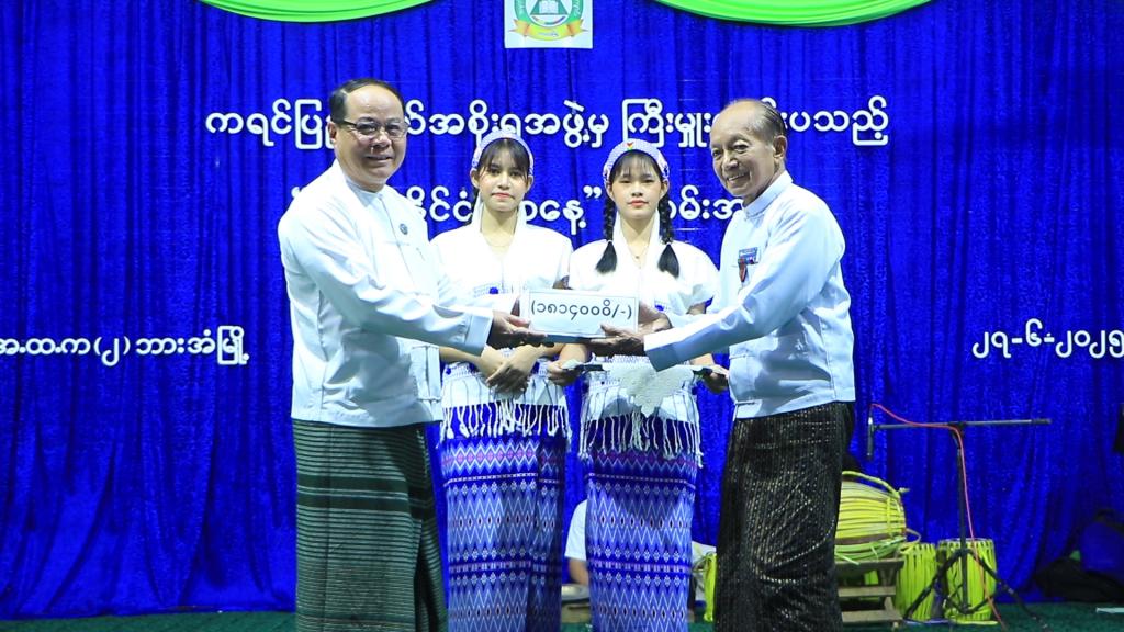 ဦးစွာ ဂီတအစည်းအရုံးဝင်အမျိုးသမီးများက မင်္ဂလာနံနက်ခင်း တေးသီချင်းဖြင့် အခမ်းအနားကို သီဆိုဖွင့် လှစ်ပြီး ကရင်ပြည်နယ်ဝန်ကြီးချုပ်ဦးစောမြင့်ဦးက အဖွင့်အမှာစကားပြောကြားကာ မြန်မာနိုင်ငံဂီတအစည်း အရုံး(ဘားအံ)အတွက် ငွေကျပ် ၁၈၁၄၀၀ဝိ/- (တစ်ဆယ့်ရှစ်သိန်းတစ်သောင်းလေးထောင်ကျပ်)ကို ဂီတအစည်းအရုံး (ဘားအံ)ဥက္ကဋ္ဌထံ ပေးအပ်ချီးမြှင့်သည်။