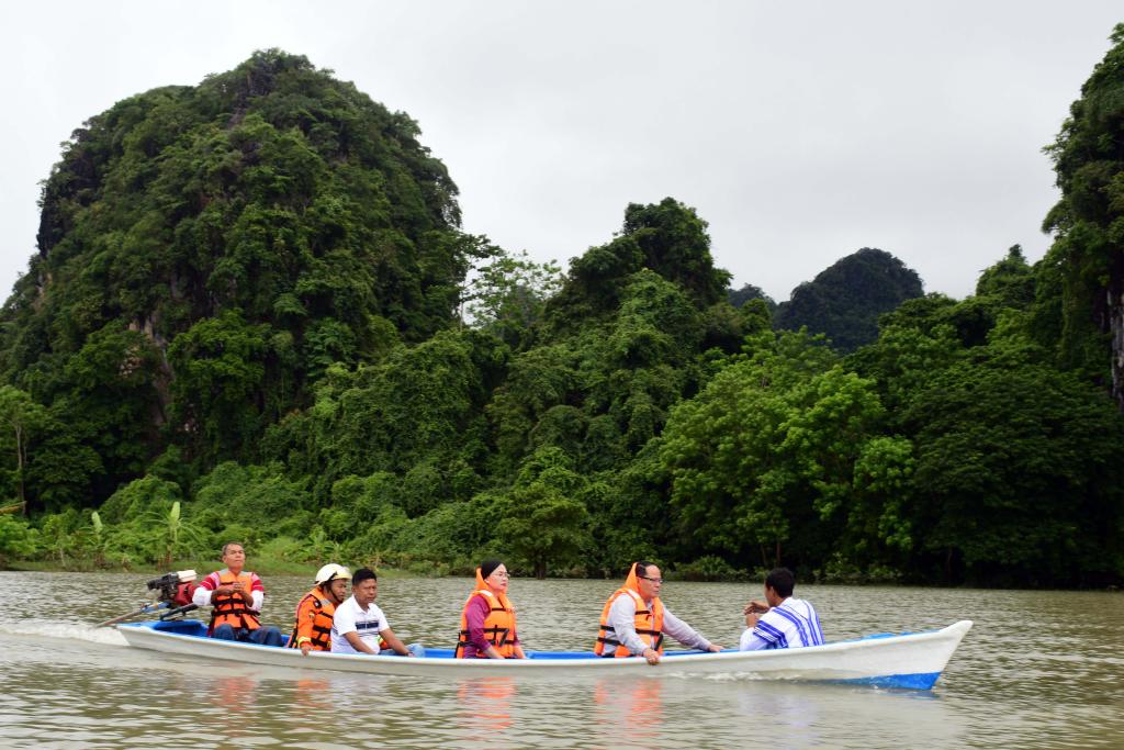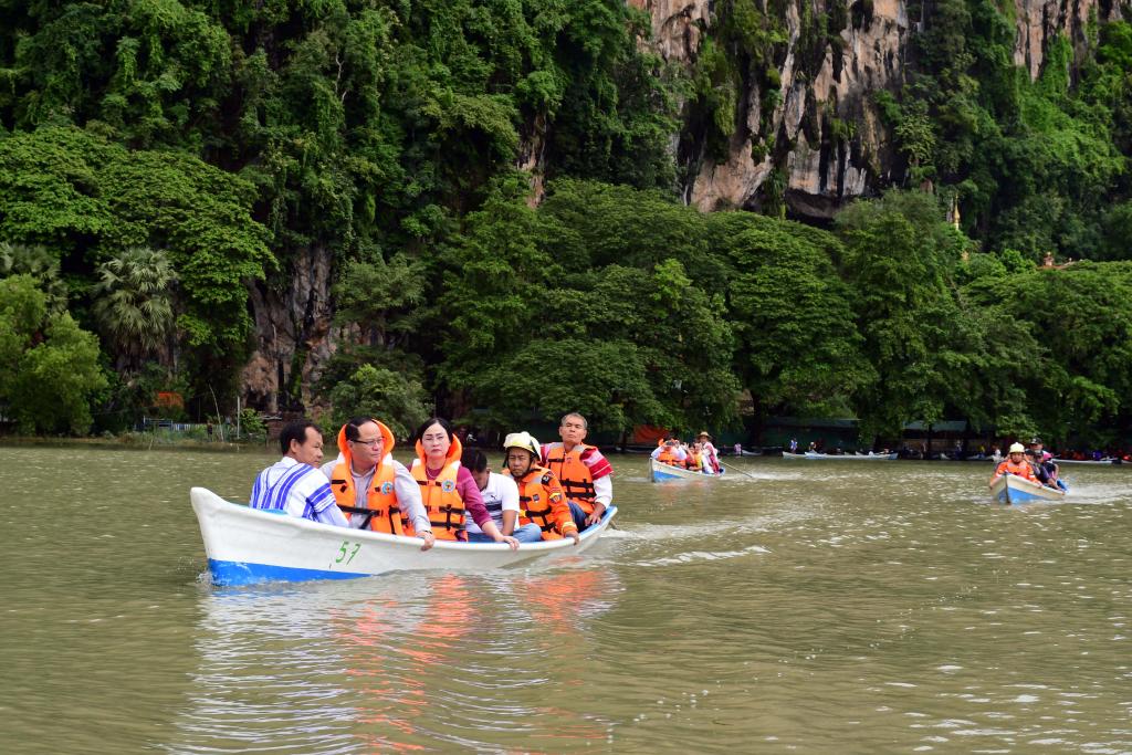 ယင်းနောက် ပြည်နယ်ဝန်ကြီးချုပ်နှင့်တာဝန်ရှိသူများသည် ဆဒ္ဒန်ဂူတည်ရှိရာ ဇွဲကပင်တောင်တန်း၏ တောင် ဘက်အစွန်ဆုံး ဆင်ဟိုင်းတောင်အားပတ်၍ ဆဒ္ဒန်ဆင်မင်းပျော်မွေ့ခဲ့သည့် ဆဒ္ဒန်အိုင်ဟုတင်စားခေါ်ဝေါ်ကြသော ဘေးမဲ့ရေအိုင်သို့ သဘာဝရေလျှံကွင်းအားဖြတ်သန်းကာ အပျော်စီးစက်တပ်လှေငယ်များစီး၍ စိမ်းစိုသာယာလှပသော သဘာဝအလှအပများကို ကြည့်ရှုလေ့လာခဲ့ကြပါသည်။