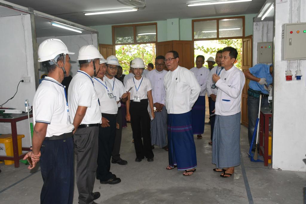 မြန်မာနိုင်ငံလုပ်သားများကျွမ်းကျင်မှု“စံ”သတ်မှတ်ပြဌာန်းရေးအဖွဲ့၏ ကျွမ်းကျင်လုပ်သားများမွေးထုတ်ပေး ရေး အစီအစဉ်အရ Electrician Building Level-1 အကဲဖြတ်စစ်ဆေးခြင်းကို စက်တင်ဘာလ ၂၉ ရက်နေ့မှ အောက်တို ဘာလ ၄ ရက်နေ့ထိ ကရင်ပြည်နယ်၊ ဘားအံမြို့၊ အလုပ်သမား ညွှန်ကြားရေးဦးစီးဌာန၊ ကျွမ်းကျင်မှုလေ့ကျင့်ရေး သင်တန်းကျောင်း(ဘားအံ)၊ လျှပ်စစ်ကျွမ်းကျင်လုပ်သား(အဆောက် အဦ)အကဲဖြတ်စစ်ဆေးရေးဌာနတွင် စစ်ဆေး အကဲဖြတ်လျက်ရှိရာ အောက်တိုဘာလ ၃ ရက်နေ့ နံနက်ပိုင်းက ပြည်နယ်ဝန်ကြီးချုပ်ဦးစောမြင့်ဦးနှင့်တာဝန်ရှိသူများ သွားရောက်ကြည့်ရှုအားပေးခဲ့ကြသည်။