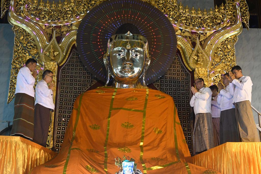 ယင်းနောက် ပြည်နယ်ဝန်ကြီးချုပ်နှင့် ဧည့်ပရိတ်သတ်အပေါင်းတို့သည့် နိုင်ငံတော်ဩဝါဒါစရိယ ကျောင်းထိုင် ဘုန်းကြီးသင်တန်းကျောင်း ကျောင်းအုပ်ဆရာတော်အဂ္ဂမဟာသဒ္ဓမ္မဇောတိကဓဇ၊ မဟာဂန္ထဝါစကပဏ္ဍိတဘဒ္ဒန္တဝိဇ္ဇာနန္ဒ ထံမှ အနုမောဒနာတရားနာကြား၍ လှူဒါန်းမှုအစုစုတို့အတွက် ရေစက်သွန်းလောင်း အမျှပေးဝေခဲ့ကြပြီး ဗုဒ္ဓသာသနံ စိရံတိဌတု (၃)ကြိမ်ရွတ်ဆိုဆုတောင်း၍ အခမ်းအနားကို ရုတ်သိမ်းကာ ရတနာရွှေမိုး ငွေမိုးများ ရွာသွန်းဖြိုး၍ ဆရာတော် သံဃာတော်အရှင်သူမြတ်များအား နေ့ဆွမ်းဆက်ကပ်လှူဒါန်းခဲ့ကြသည်။