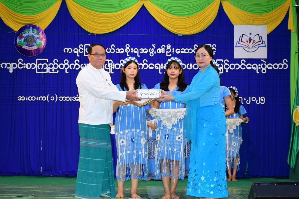 ယင်းနောက် မဟာမြကျွန်းသာကိုယ်ပိုင်အထက်တန်းကျောင်းမှ ကျောင်းသား/ကျောင်းသူများက ထိန်းသိမ်းစို့လေ စာပေအမွေ တေးသီချင်း၊ အမှတ်(၄)အခြေခံပညာအထက်တန်းကျောင်းမှ ကျောင်းသား၊ကျောင်းသူ များက အောင်မြင်ပါစေမြန်မာပြည် သီချင်းတို့ဖြင့် သီဆိုကပြဖျော်ဖြေကြပြီး ပြည်နယ်ဝန်ကြီးချုပ်နှင့်အဖွဲ့သည် ဆုရရှိ ကြသူများနှင့်စုပေါင်းမှတ်တမ်းဓာတ်ပုံများရိုက်ကူးကြကာ ကျောင်းသား၊ကျောင်းသူ၊ဆရာ၊ဆရာမများအား ရင်းနှီးနွေး ထွေးစွာတွေ့ဆုံနှုတ်ဆက်၍ အားပေးစကားများပြောကြားခဲ့ပါသည်။