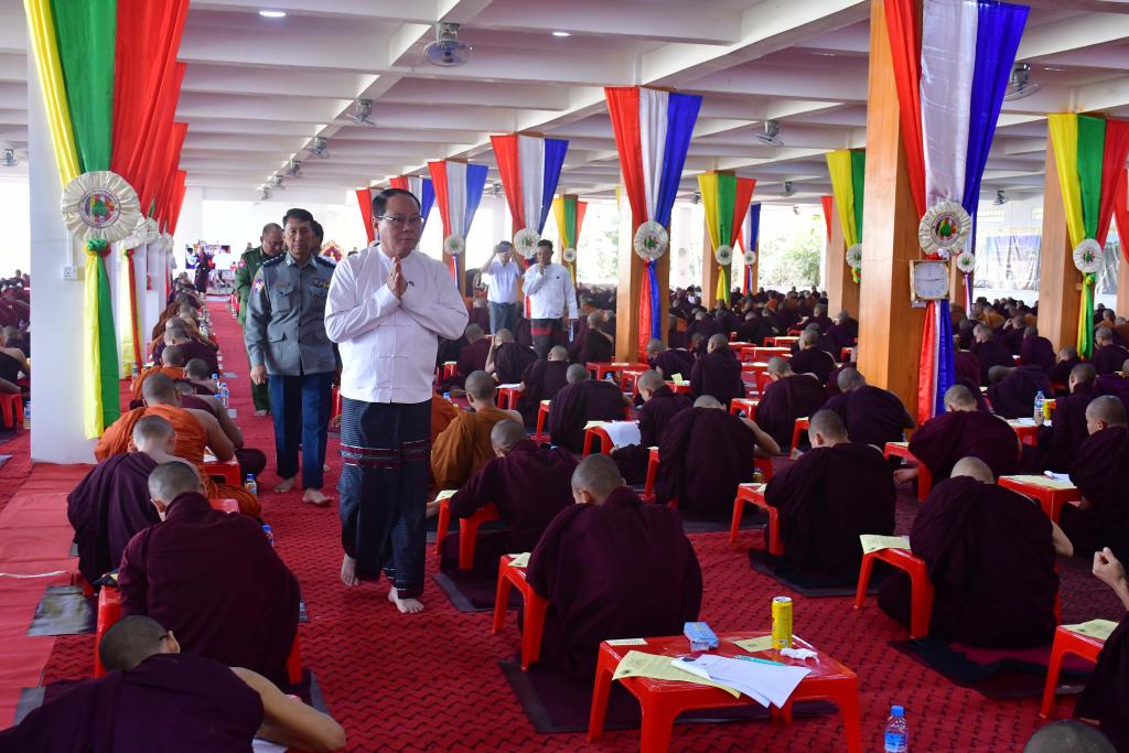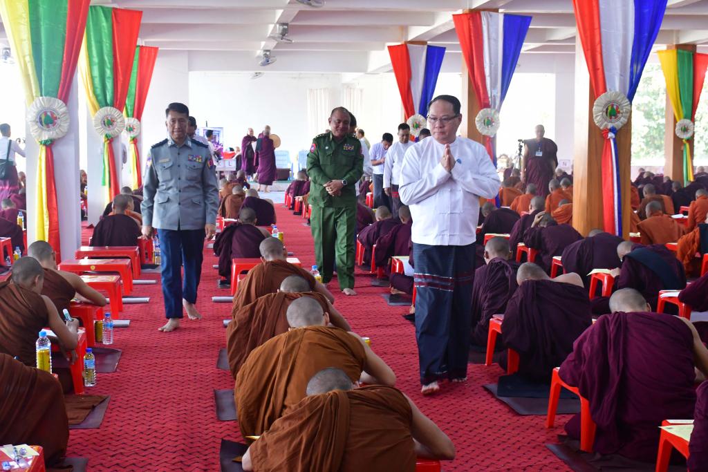 ဦးစွာ ပြည်နယ်ဝန်ကြီးချုပ်၊ ပြည်နယ်တရားလွှတ်တော်တရားသူကြီးချုပ်ဦးညွန့်လင်း၊ ပြည်နယ်အစိုးရအဖွဲ့ဝင် များနှင့် ဌာနဆိုင်ရာတာဝန်ရှိသူများသည် မြန်မာနိုင်ငံလုံးဆိုင်ရာ သာသနမာမက သာသနာလင်္ကာရ သာမဏေကျော် စာမေးပွဲ ကြီးကြပ်ရေးအဖွဲ့ ဩဝါဒါစရိယဆရာတော်များ၊ ကြီးကြပ်ရေးဆရာတော်များအား ဖူးမြော်ကြည်ညို၍ သာသနာရေးဆိုင်ရာများနှင့်ဒေသဖွံ့ဖြိုးရေးဆိုင်ရာများလျှောက်ထားတင်ပြကာ လှူဖွယ်ဝတ္ထုပစ္စည်းများနှင့်နဝကမ္မ အလှူငွေများဆက်ကပ်လှူဒါန်းခဲ့ကြသည်။