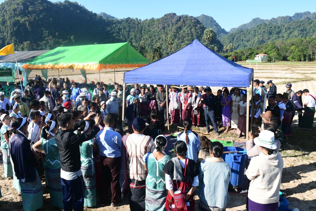 ထို့နောက် ဆောင်းနေကြာသီးနှံမျိုးစေ့ချစိုက်ပျိုးခြင်းကွင်းသရုပ်ပြပွဲကို ကျင်းပရာ ပြည်နယ်ဝန်ကြီးချုပ်က အမှာ စကားပြောကြားပြီး ပြည်နယ်စိုက်ပျိုးရေးဦးစီးဌာနညွှန်ကြားရေးမှူးဦးထွန်းမြင့်က နေကြာစိုက်ပျိုးခြင်းနှင့်ပတ်သက်၍ ရှင်းလင်းတင်ပြကာ မျိုးစေ့ချကိရိယာများဖြင့် နေကြာသီးနှံမျိုးစေ့ချစိုက်ပျိုးခြင်းကွင်းသရုပ်ပြပွဲကိုကျင်းပရာ ပြည်နယ် ဝန်ကြီးချုပ်၊ ပြည်နယ်တရားလွှတ်တော်တရားသူကြီးချုပ်၊ ပြည်နယ်အစိုးရအဖွဲ့ဝင်များကိုယ်တိုင် ပါဝင်သရုပ်ပြသခဲ့ကြပြီး ကွင်းသရုပ်ပြခြင်းနှင့်တောင်သူများအစေ့ချစိုက်ပျိုးခြင်းတို့ကို ကြည့်ရှုအားပေးကာ တာဝန်ရှိသူများအား လိုအပ်သည်များ မှာကြားခဲ့သည်။