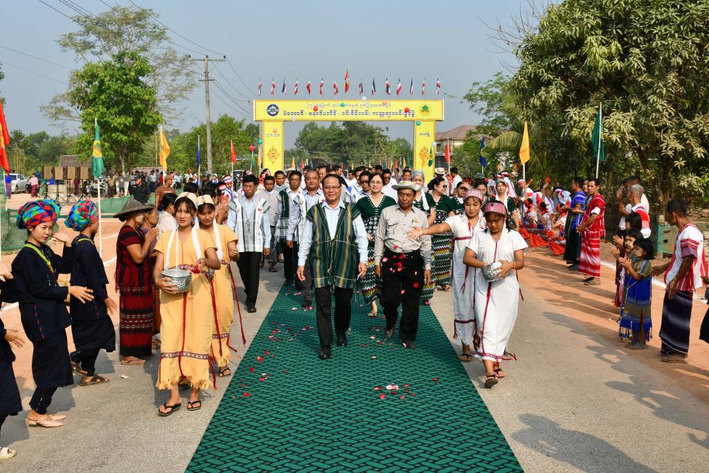 ယင်းနောက် ပြည်နယ်ဝန်ကြီးချုပ်၊ ပြည်နယ်အစိုးရအဖွဲ့ဝင်များနှင့်တာဝန်ရှိသူများက မဲဘောင်-နောင်ပလိန် ဝင်းစိန်လမ်း ကတ္တရာလမ်းအား ဖဲကြိုးဖြတ်ဖွင့်လှစ်ပေးကြပြီး လမ်းဖွင့်ပွဲသို့တက်ရောက်လာသော ယဉ်ကျေးမှု အဖွဲ့များနှင့် စုပေါင်းမှတ်တမ်းဓာတ်ပုံများရိုက်ကူး၍ ဂုဏ်ပြုဆုငွေများပေးအပ်ချီးမြှင့်ကြကာ အဆိုပါလမ်းအား ဖြတ်သန်းကြည့်ရှု စစ်ဆေးခဲ့ကြသည်။