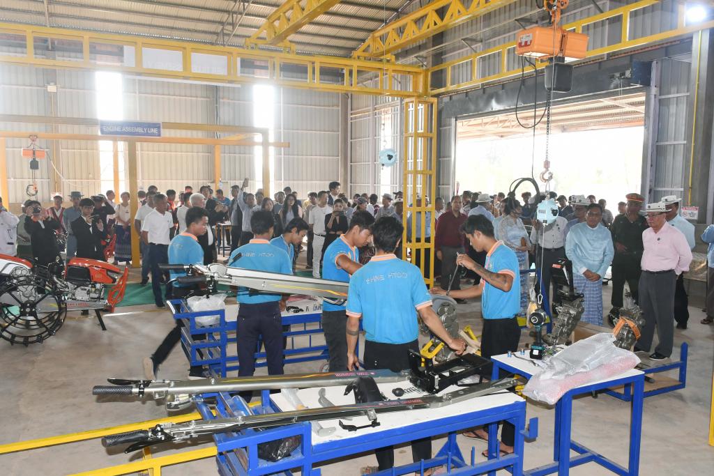 ထို့နောက် ပြည်နယ်ဝန်ကြီးချုပ်နှင့်တာဝန်ရှိသူများသည် စက်ရုံဖွင့်ပွဲသို့တက်ရောက်လာသောယဉ်ကျေးမှုအဖွဲ့များ အား ဂုဏ်ပြုဆုများပေးအပ်ချီးမြှင့်ပြီး စုပေါင်းမှတ်တမ်းဓာတ်ပုံများရိုက်ကူး၍ စက်ရုံအတွင်း Engine Assembly Line တွင် ကူဘိုတာအင်ဂျင်များ တပ်ဆင်ထုတ်လုပ်နေမှု၊ Power Tiller Assembly Line တွင် လက်တွန်းထွန်စက် Power Tiller များတပ်ဆင်ထုတ်လုပ်နေမှု၊ တပ်ဆင်ထုတ်လုပ်ပြီး လယ်ယာသုံးစက်ပစ္စည်းများ၊ AImega(စက်ရုပ်လက်)ဖြင့် လက်တွန်းထွန်စက်၏ တွဲဘက်ပစ္စည်းများ၊ လယ်ယာသုံးကိရိယာများ တပ်ဆင်ထုတ်လုပ်မှုတို့ကို လှည့်လည်ကြည့်ရှု အားပေး ပြီး စက်ရုံတာဝန်ရှိသူများအား လိုအပ်သည်များမှာကြားခဲ့သည်။
