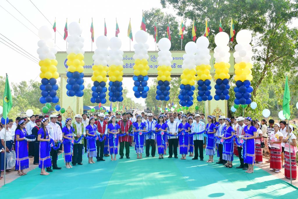 ထို့နောက် မဲဘောင်-နောင်ပလိန်-ဝင်းစိန်လမ်းပေါ်ရှိ (၁၈)ပေအကျယ်ကတ္တရာလမ်း ၂ မိုင် ၂ ဖာလုံဖွင့်ပွဲကို ကျင်းပရာ ပြည်နယ်ဝန်ကြီးချုပ်၊ ပြည်နယ်တရားလွှတ်တော်တရားသူကြီးချုပ်၊ ပြည်နယ်ဝန်ကြီးများနှင့်တာဝန်ရှိသူများက လမ်းအားဖဲကြိုးဖြတ်ဖွင့်လှစ်ပေးကြသော ဖွင့်ပွဲတွင်ပါဝင်အားဖြည့်ကူညီပေးကြသော ဘင်ခရာ၊ပန်းပွားအဖွဲ့နှင့်ယဉ်ကျေးမှု အဖွဲ့များနှင့်စုပေါင်းမှတ်တမ်းဓာတ်ပုံများရိုက်ကူး၍ ဂုဏ်ပြုဆုများပေးအပ်ချီးမြှင့်ကြသည်။