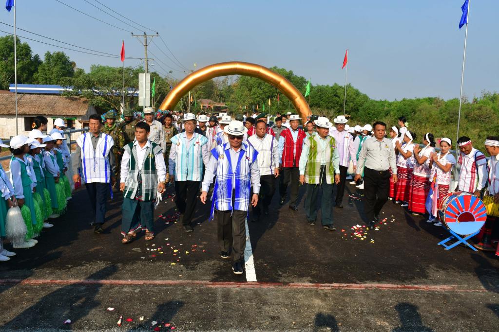 ထို့နောက် ပြည်နယ်လမ်းဦးစီးဌာန ညွှန်ကြားရေးမှူး(မြို့ပြ)ဦးတင်ဆောင်က မဲဘောင်-နောင်ပလိန်-ဝင်းစိန်လမ်း ဆိုင်ရာအချက်အလက်များကို ရှင်းလင်းတင်ပြပြီး ဒေသခံတစ်ဦးက ကျေးဇူးတင်စကားပြန်လည်ပြောကြားကာ ပြည်နယ် ဝန်ကြီးချုပ်နှင့်တာဝန်ရှိသူများသည် တံတားနှင့်လမ်းဖွင့်ပွဲသို့တက်ရောက်လာသူများအား ရင်းနှီးနွေးထွေးစွာတွေ့ဆုံနှုတ် ဆက်၍ အားပေးစကားများပြောကြားခဲ့ကြောင်း သိရှိရပါသည်။